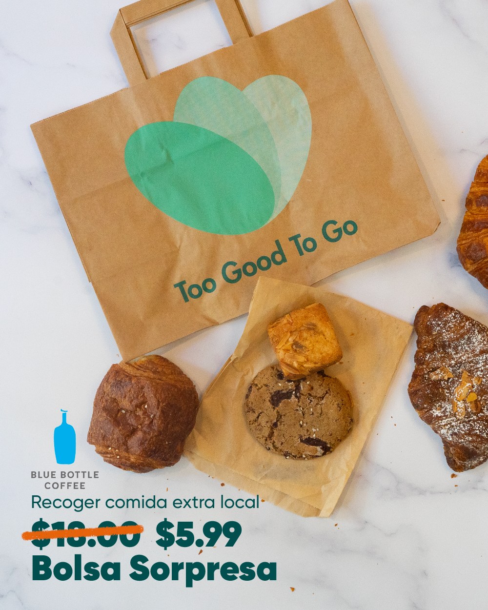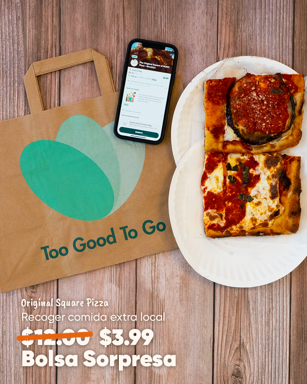 TooGoodToGo had just entered the US market and was seeing low app usage in parts of Brooklyn and Queens that should have been a natural fit. My instinct was that the category was speaking past these users entirely. I was lucky enough to have the support and space to test a hypothesis as the Art Director: what if we actually spoke their language? Specifically, Spanish, considering a major portion of residents in the specific under performing zip-codes were Spanish speakers.